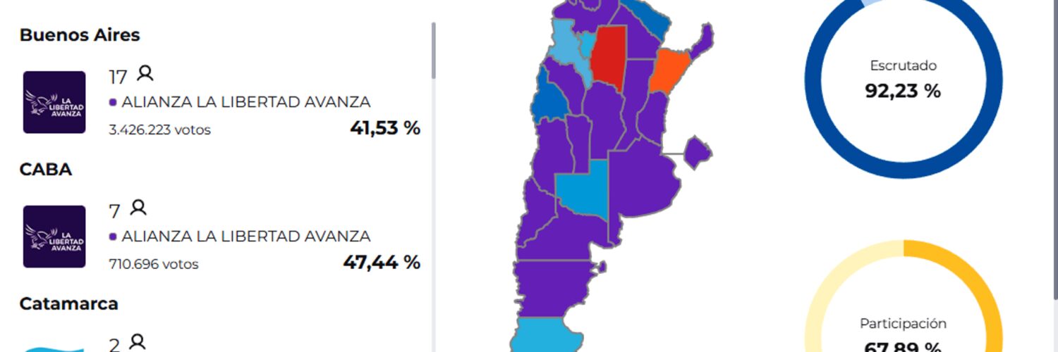 Con más del 91 % de las mesas escrutadas en las elecciones legislativas argentinas, se empiezan a consolidar los primeros resultados oficiales que dan cuenta de un cambio significativo en la composición del Congreso. La Libertad Avanza (LLA) se impone como la principal fuerza política, alcanzando un 40,88 % del total de votos y asegurando 64 bancas en la Cámara.